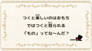 飲むと怒られてしまう「飲み物」ってな~んだ? | やさしい(幼稚園レベル)- 挑戦状 060 やさしい(幼稚園) X Facebook はてブ LINE コピー 2025.11.062025.11.07 ヒントをみる おたすけロボ 甘(あま)くてシュワシュワする「飲(の)み物(もの)」のことダヨ! 答(こた)えをみる なぞなぞ仮面 正解(せいかい)は「コーラ」だぞ!わかったかな!? イラっと博士 怒(おこ)るときは“コラー!”というんじゃな! おにまるクン つぎの挑戦状(ちょうせんじょう)はこれだオニ! 次の挑戦状 雨の日に着て出かける「妖怪」ってな~んだ? | やさしい(幼稚園レベル)- 挑戦状 061 前の挑戦状 白い毛を飛ばしてくる黄色い「花」ってな~んだ? | やさしい(幼稚園レベル)- 挑戦状 059