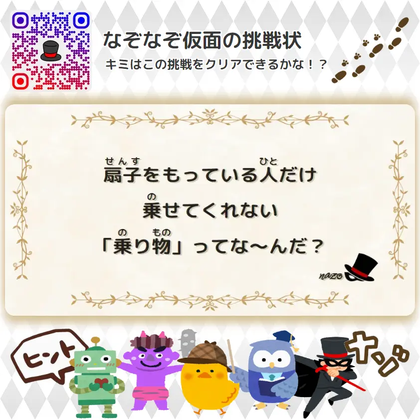 どうやっても動かすことができない「壺」ってな~んだ? | むずかしい(大人レベル)- 挑戦状 039 むずかしい(大人) X Facebook はてブ LINE コピー 2025.11.082025.11.09 なぞなぞ仮面むずかしい(大人(おとな)レベル)の挑戦状(ちょうせんじょう)だゾ! ヒントをみるおたすけロボたくさんの水(みず)が流(なが)れている「壺(つぼ)」のことだヨ! 答(こた)えをみるなぞなぞ仮面正解(せいかい)は「滝(たき)つぼ」だゾ!わかったかな!?イラっと博士“壺(つぼ)”といっても、滝(たき)“つぼ”のことじゃったな! なぞなぞ仮面次(つぎ)の挑戦状(ちょうせんじょう)はこれだゾ!