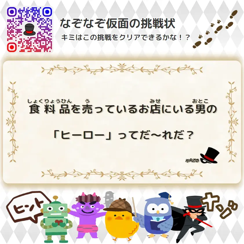 ふつう(中学生) 食料品を売っているお店にいる男の「ヒーロー」ってだ~れだ?