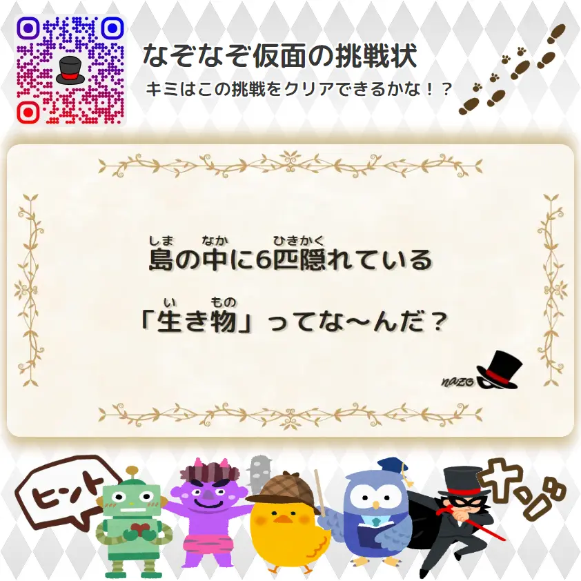 ふつう(中学生) 島の中に6匹隠れている「生き物」ってな~んだ? | ふつう(中学生レベル)- 挑戦状 077
