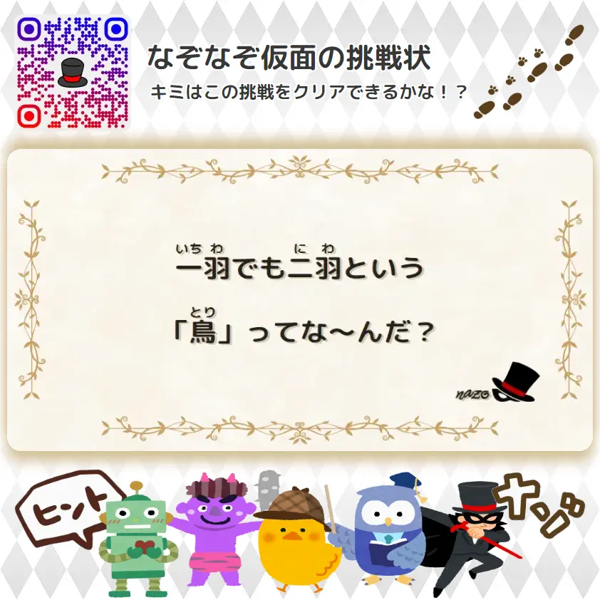やさしい(幼稚園) 一羽でも二羽という「鳥」ってな~んだ? | やさしい(幼稚園レベル)- 挑戦状 064